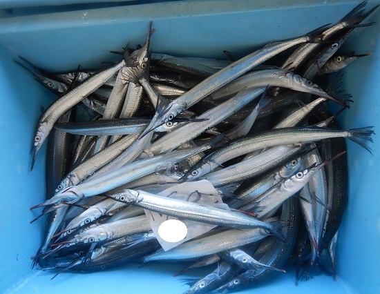 | 説明4 | 船びき網で漁獲されたサヨリです。この時期に答志地区ではサヨリを狙って船びき網で漁獲されます。高級食材で、寿司ネタや汁物として珍重されます。 |