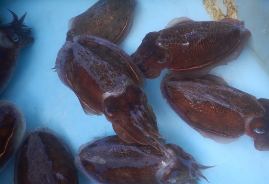 | 説明5 | 底びき網で漁獲されたコウイカです。この日は大漁で、これまでの調査で最も多く漁獲されていました。刺し身や寿司、てんぷらがおすすめです。 |