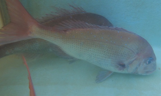 | 説明1 | 刺し網で漁獲されたマダイです。昨日は2kgを超える大きなマダイが大漁でした。春の産卵を控え、良く太っています。刺し身や塩焼き、てんぷらなどがおすすめです。 |