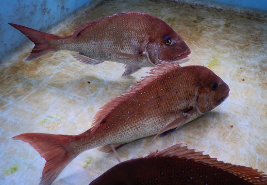 | 説明3 | 定置網で漁獲されてマダイです。こちらも春に定置網で漁獲がまとまります。産卵を控え良く太っています。刺し身や塩焼きがおすすめです。 |