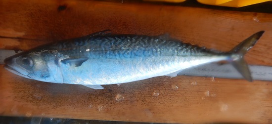 | 説明4 | 定置網で漁獲されたマサバです。脂肪含量を測定したところ、20%をはるかに超え、非常に脂の乗った個体でした。最近はまき網でややまとまった漁獲がみられます。塩焼きや煮つけ、みそ煮がおすすめです。 |