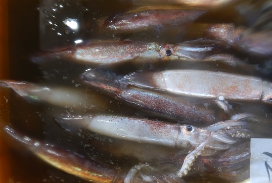 | 説明5 | 定置網で漁獲されたスルメイカです。スルメイカもこの時期に定置網でまとまります。炒め物やフライがおすすめです。 |