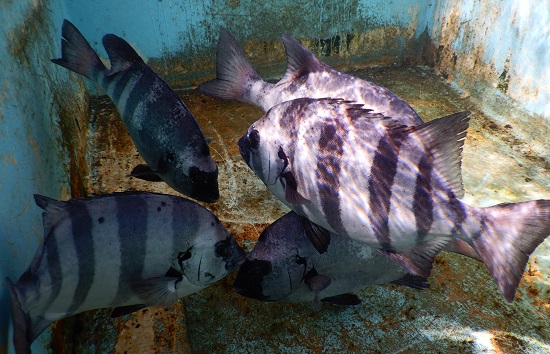 | 説明2 | 定置網で漁獲されたイシダイです。鳥羽市や志摩市では「クロメ」、南伊勢町より西では「ナベ」と呼ばれます。例年2〜4月頃に定置網で漁獲がまとまります。刺し身、塩焼きがおすすめです。 |