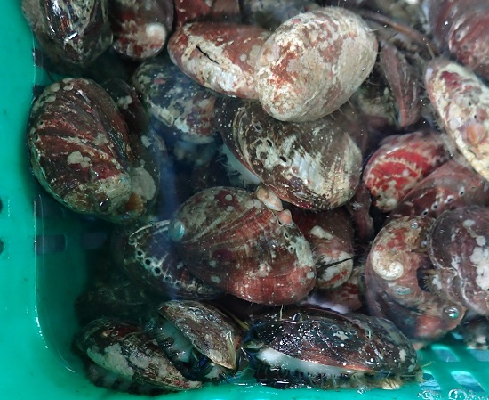 | 説明3 | 海女漁で漁獲されたトコブシです。県では「フクダメ」や「フク」と呼ばれることもあります。甘辛くしょうゆで炊くのがおすすめです。 |