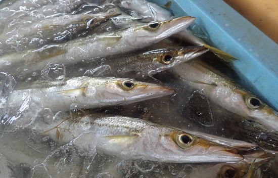 | 説明1 | 定置網で漁獲されたアカカマスです。夏の魚で今後の漁獲が期待されます。塩焼き、カマス寿司がおすすめです。 |