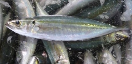 | 説明2 | 定置網で漁獲されたムロアジです。尾鷲では「キンムロ」と呼ばれます。ムロアジというと干物が連想されますが、新鮮なものは刺身にしても美味しく、水揚げされる漁村でしか楽しめない味の1つです。 |