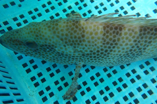 | 説明5 | 一本釣りで漁獲された約1sのオオモンハタです。近年、市場で見かける機会が多い魚で、鵜殿港では一本釣り、延縄、定置網で水揚げされていました。鍋や煮つけがおすすめです。 |