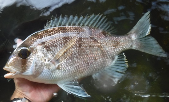 | 説明5 | 定置網で漁獲されたメイチダイです。今月初めにも紹介しましたが、その後も県内で好調が継続しています。刺し身や炙りがおすすめです。 |
