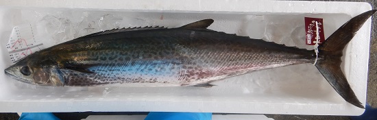 | 説明2 | 曳き縄釣りで漁獲されたサワラです。10月3日に「答志島トロさわら」としてブランド期間が始まりました。ブランド魚は写真のようにタグが付けられており、脂の乗りが良いことが証明されています。刺し身や炙り、塩焼きなどがおすすめで、脂が乗った今が食べ時です。 |