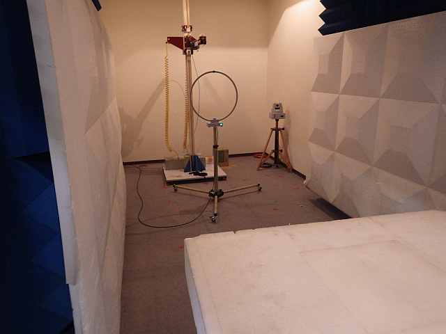| 仕様 | ・測定周波数範囲 9kHz〜30MHz ・電波暗室 3m法 全無響簡易暗室 シールド面寸法 D7.0m×W3.0m×H3.0m (電波吸収体により 最狭部 D6.2m×W2.1m×H2.6m) 扉開口部 W1.0m×H2.0m ・測定受信機 Rohde & Schwarz ESCI 7 ・アンテナ アクティブループアンテナ Schwarzbeck FMZB 1519-60 D ループ外径 60cm (CISPR 16-1-4 準拠) ・自動測定ソフトウェア テクノサイエンスジャパン TEPTO-DV3/ME ・供試装置用テーブル コロナ電子工業 発泡ポリスチレン製 D1.0m×W1.5m×H0.8m (テーブル高は 床面からの寸法) ・供試装置用電源 1φ AC 0V〜260V、20A (スライダックによる電圧調整、商用周波数) ・測定室 シールド面寸法 D4.0m×W3.0m×H3.0m 扉開口部 W1.0m×H2.0m |