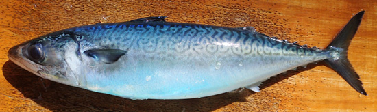 | 特徴 | 体側正中線上に黒色の斑点がないか,あっても背側の縞模様と連続する。背びれ第9棘までの基底長は尾叉長の12%以上。体の断面はゴマサバに比べ側扁する。 |