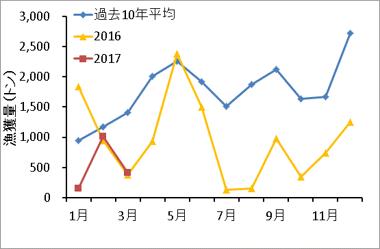 | 近年の月別漁獲量グラフ | (GIF:10.61KB) |