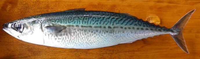 | 特徴 | 体側正中線上に黒色の斑点があり,それらは背側の縞模様とは連続しない。背びれ第9棘までの基底長は尾叉長の12%未満。体の断面はマサバに比べ丸い。 |