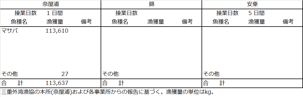 | 中型まき網 | マサバ114t |