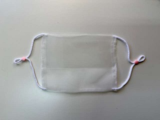 | 製品説明 | 糸伍透明マスク「はごろも」は、伊賀組紐で培った熟練の縫製職人の技術によって透明で柔らかい生地をマスクに仕立てることで実現しました。 限りなく透明で、薄く、洗って使えるポリエステル素材の生地を二重に縫製してポケットを作り、薄いアクリル板を挟みこむことにより、飛沫拡散防止機能を持たせました。 アクリル板はマスクから取り出し除菌することで繰り返し使用することができます。 新型コロナウイルスの感染が広がる中、糸伍透明マスク「はごろも」は飛沫を抑えて、安心感を与える介護や接客を可能とします。 |