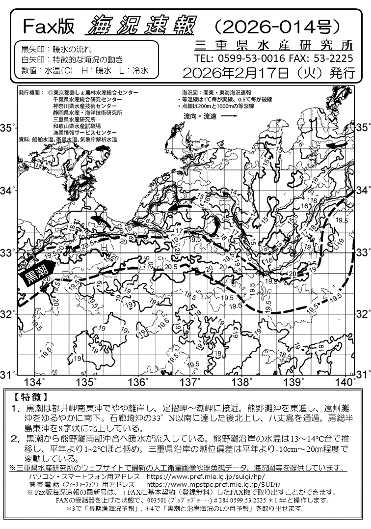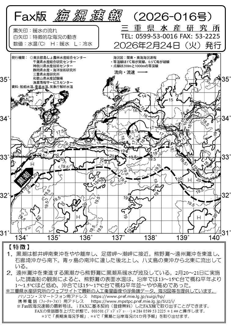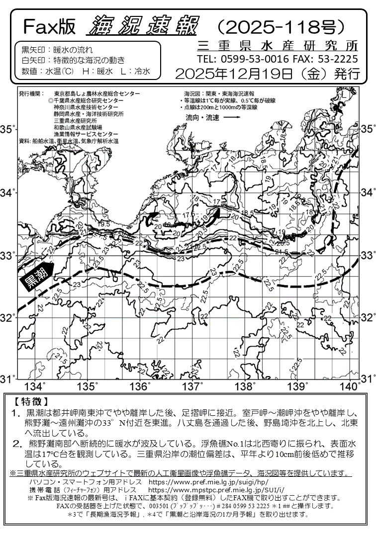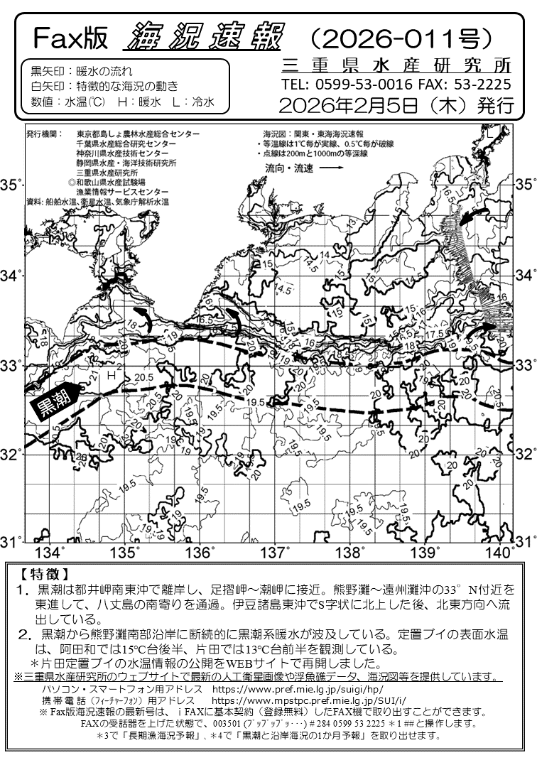 Fax版海況速報バックナンバー(三重県水産研究所)<一覧画面>