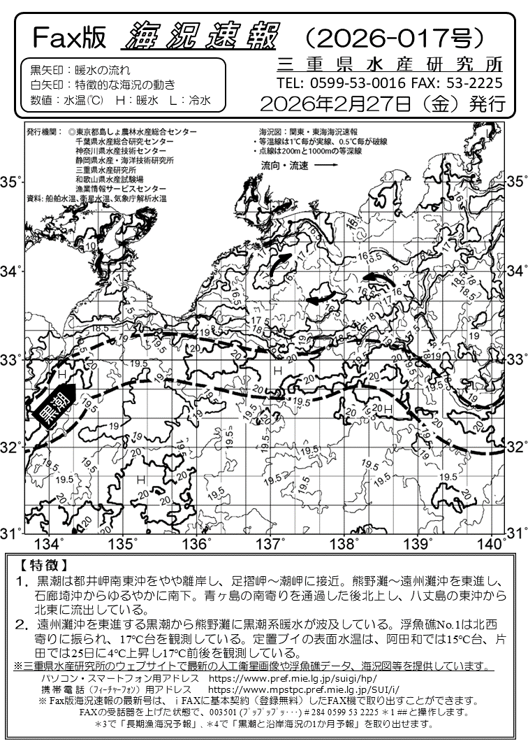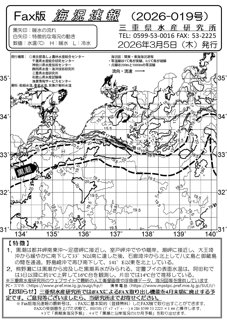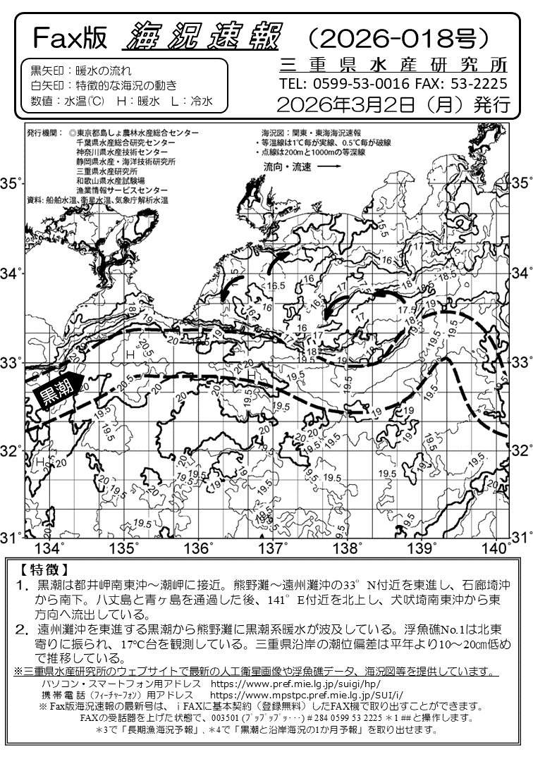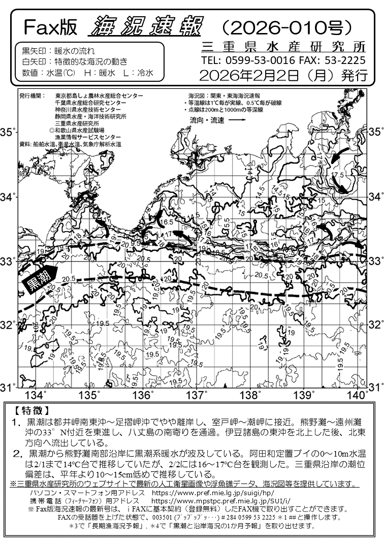 Fax版海況速報バックナンバー(三重県水産研究所)<一覧画面>